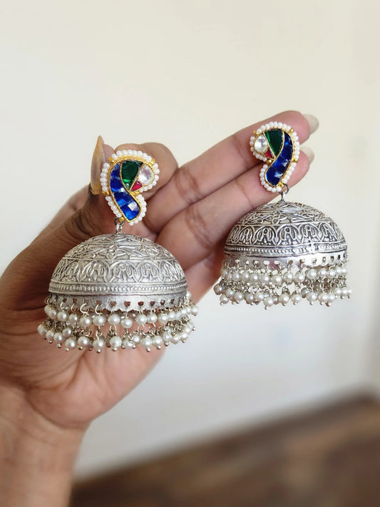 925 silver polish fusion jhumka earrings