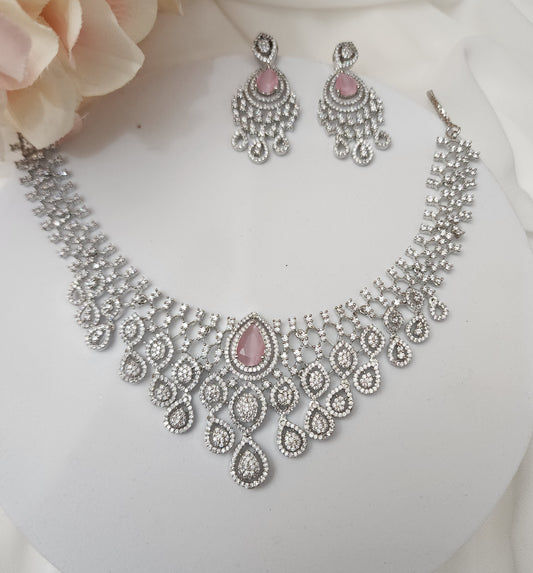 Aria sivertone CZ necklace set