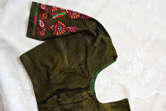 Green mushroom silk saree blouse