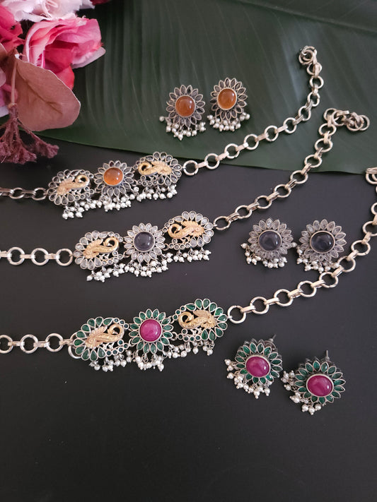 Kolhapuri peacock oxidized Necklace set