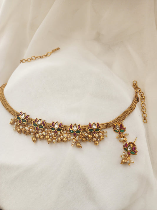 Mangli lotus gold plated necklace set