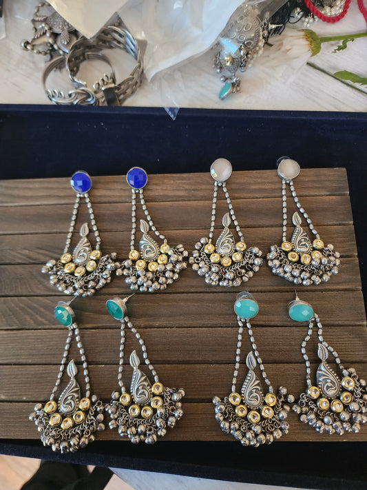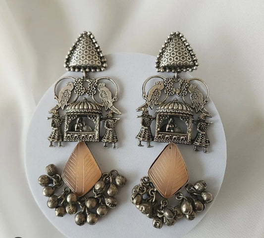 Ridhi silver alike fusion jhumka earrings