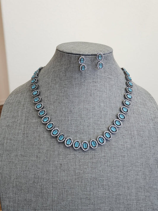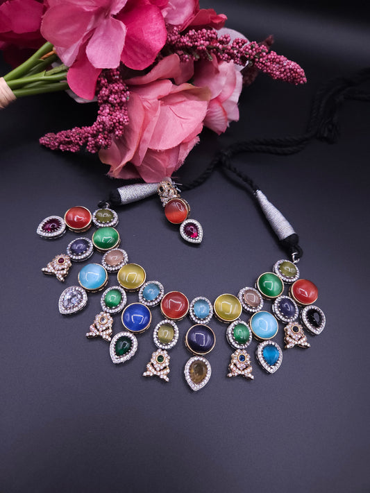 Rohini Silver Alike choker Necklace set