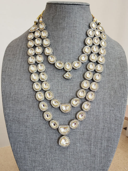 Rodium and goldplated dualtone kundan statement necklace set