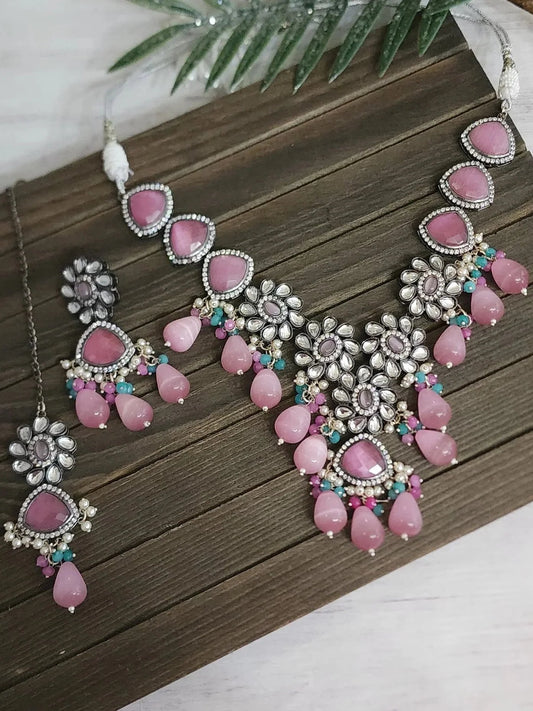 Ridhi victorian mossanite polki necklace set