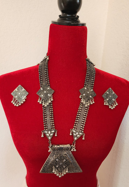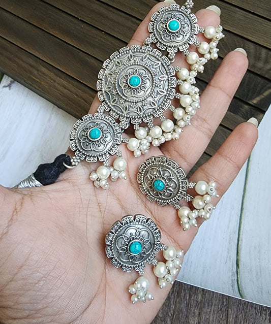 Silver alike guttapusalu necklace set heavy set neckline necklace ruby stone necklace set
