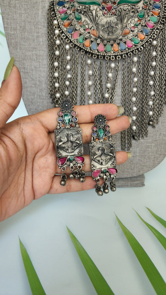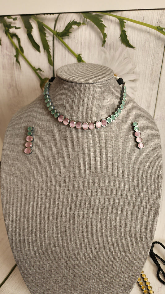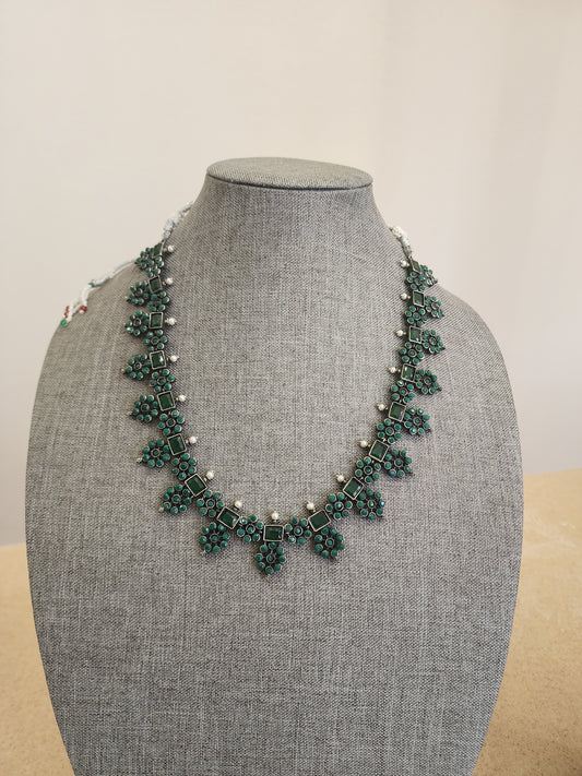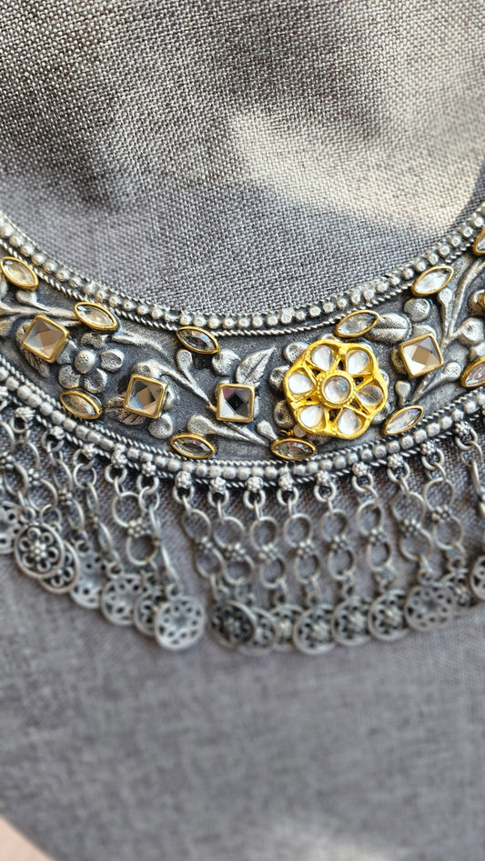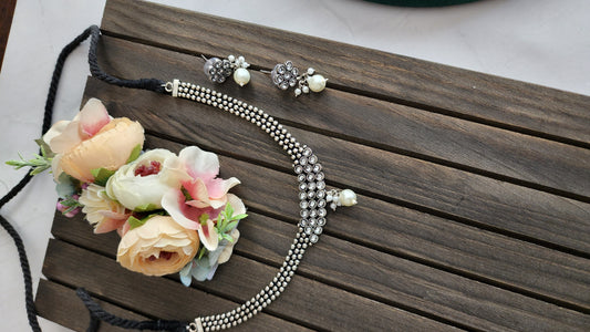 Simple indowestern Silver alike necklace set