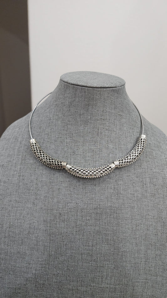 Simple Oxidized silvertone necklace set