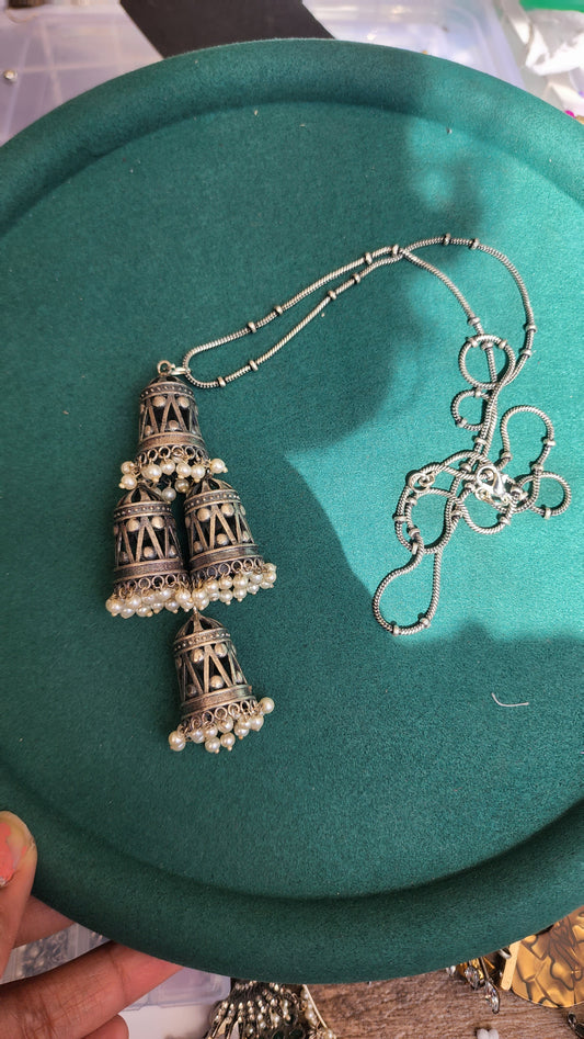 Statement jhumka silveralike handmade necklace