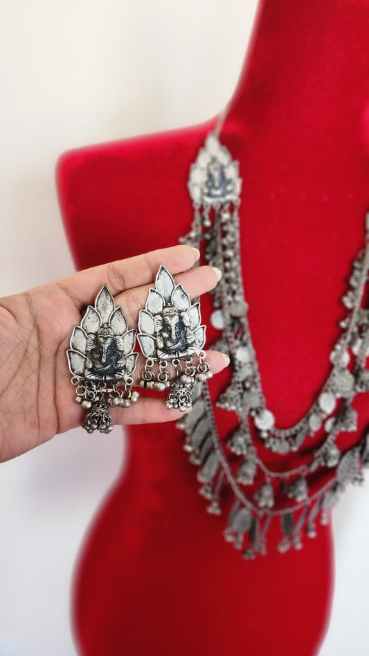 Statement jhumka Oxidized handmade necklace
