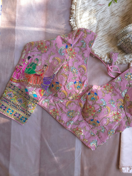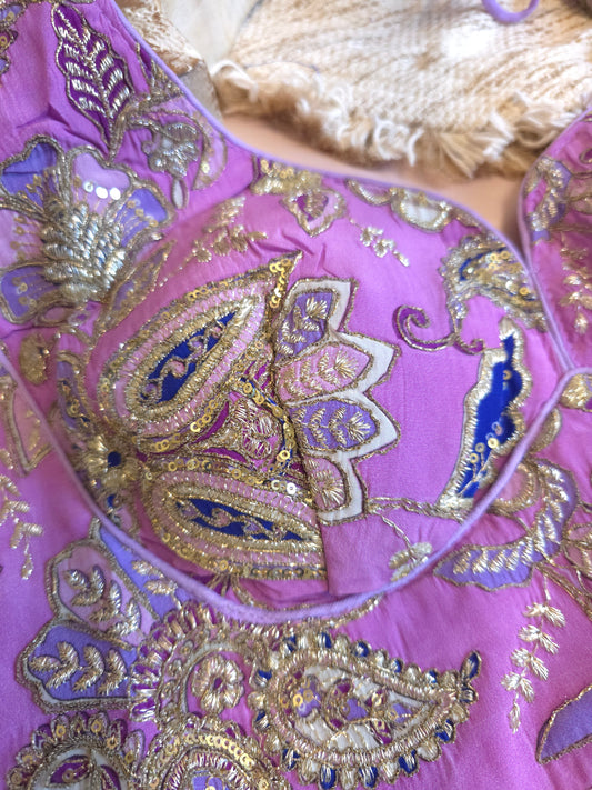 Pink Crepe Viscose Embroidered Full-Sleeve Blouse( preorder arrives in 2weeks)