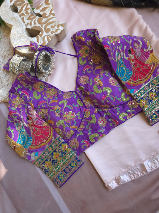 Purple Crepe Viscose Embroidered Full-Sleeve Blouse