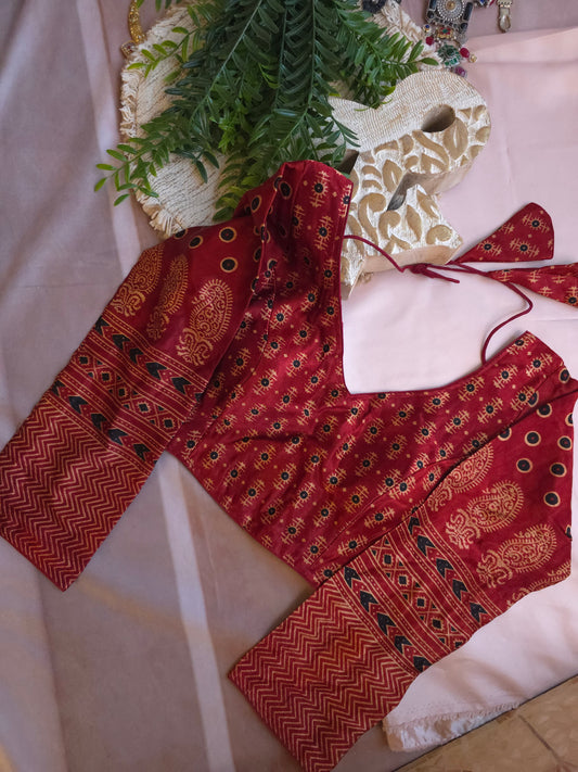 Red Crepe Viscose Embroidered Full-Sleeve Blouse
