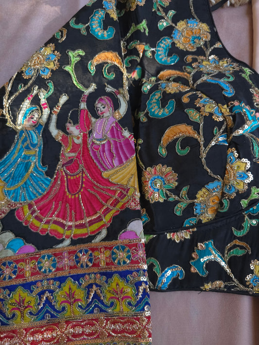 Black Crepe Viscose Embroidered Full-Sleeve Blouse