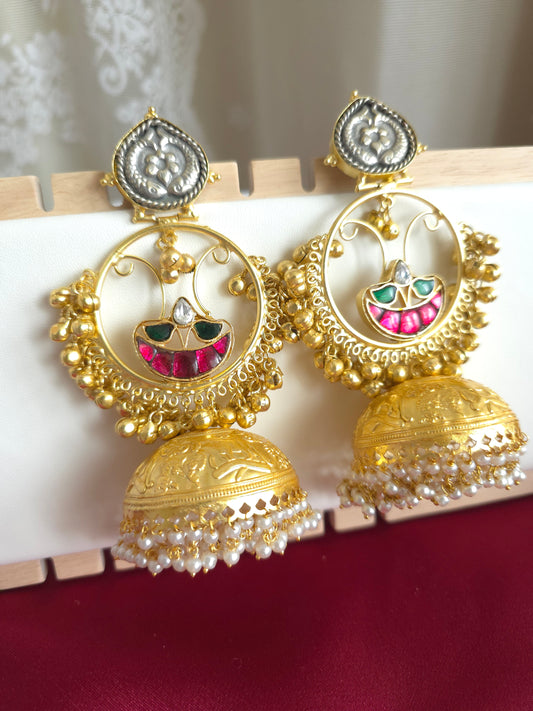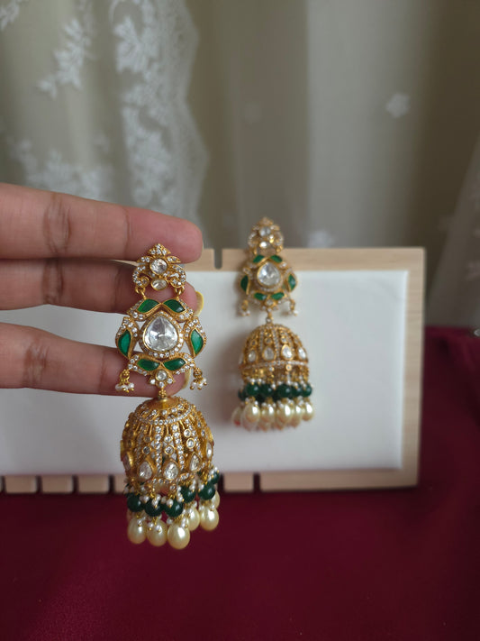 Ashmitha Regal Polki Pearl Chandbali Earrings