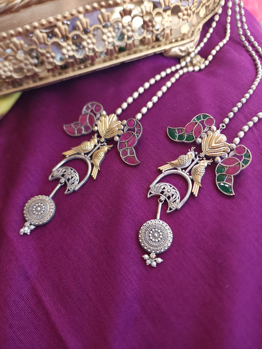 Mogul dualtone silver alike earrings