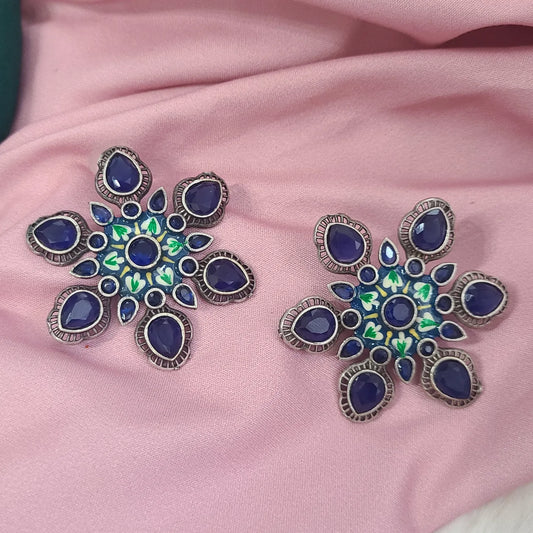 Xxl Handpainted silver alike stud earrings