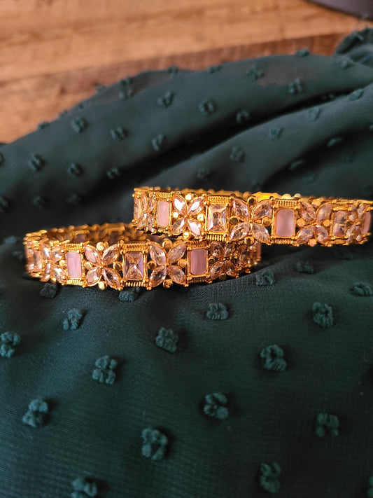 Cz gold plated pink bangles 2 '6 size