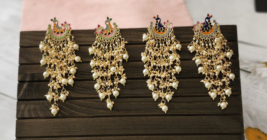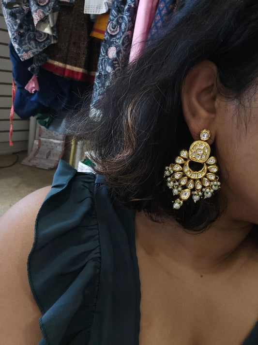 Gold Plated Kundan Chandbali chandelier Earrings meenakari Jhumka earrings