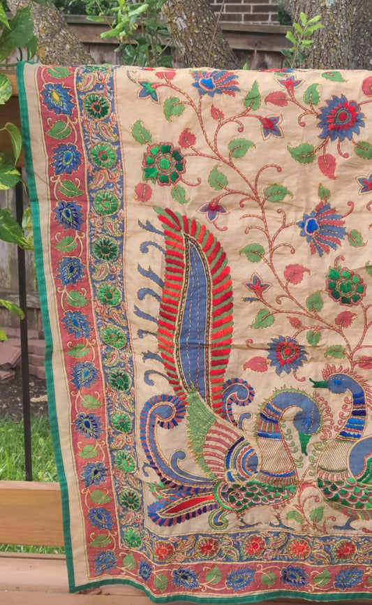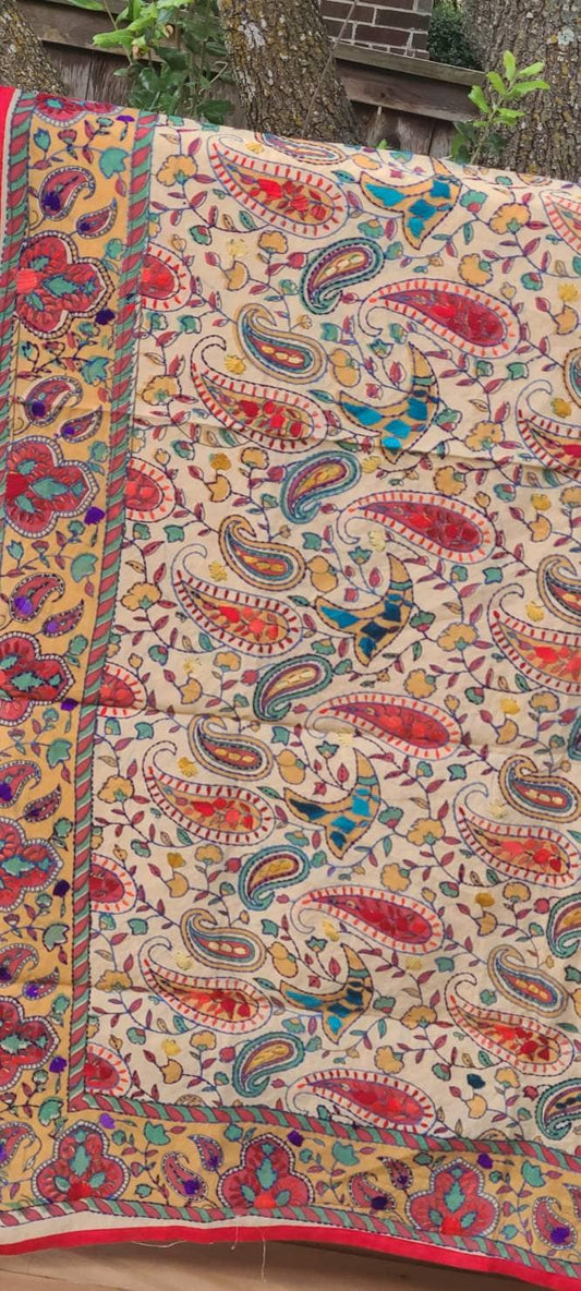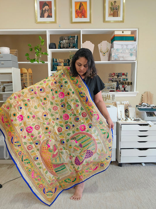 Madhubani dupatta phulkari dupatta hand embroidered dupatta kalamkari gift for her women gifts half white dupatta blue dupatta red dupatta