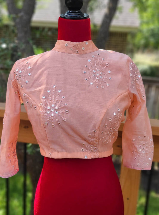 chanderi Mirror work Peach blouse half white blouse blouse cotton blouse saree blouse crop top blouse
