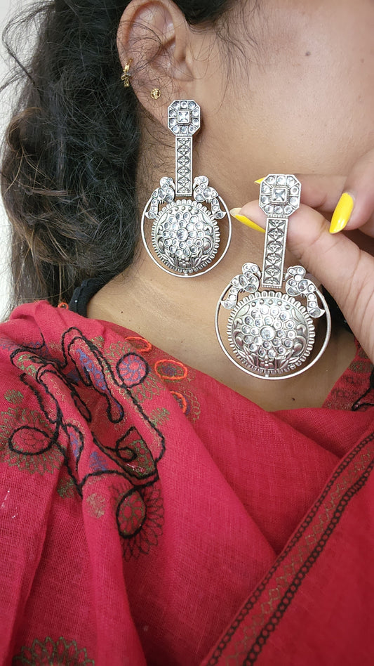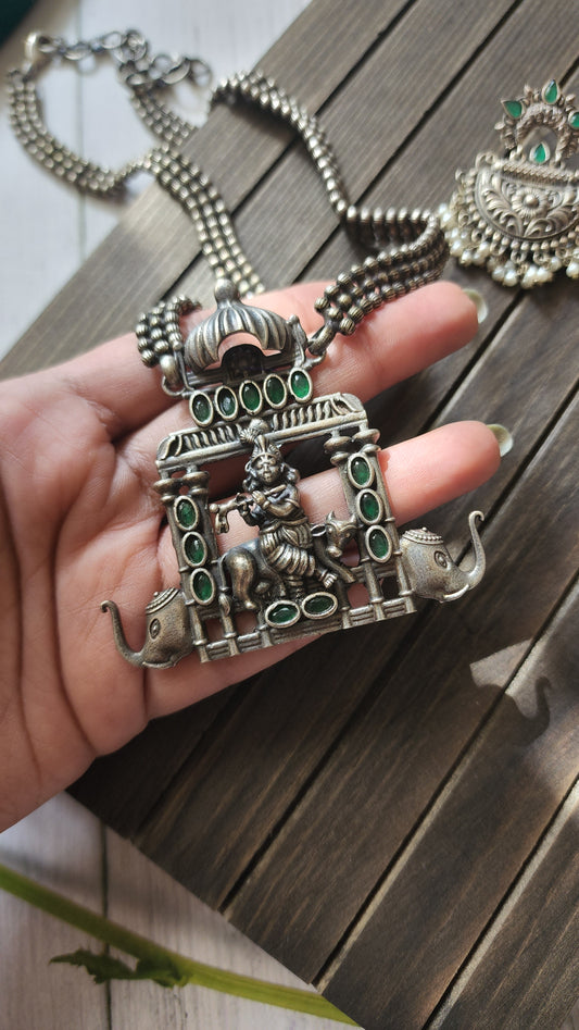 Antique Indian Traditional Silver look alike Necklace and Earrings, Pendant Necklace Fusion Necklace Indian jewelry Dual tone silver alike necklace