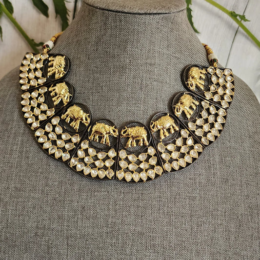Hathi dualtone polki necklace set
