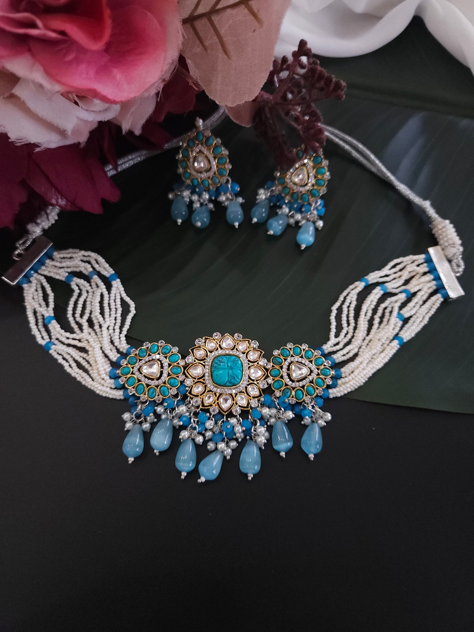 Add charm and charisma to your beautiful personality with this beautifully designed and handcrafted Brass necklace. The antique finish gives this Necklace a very eye-catching look. Choker is also designed beautifully with stones and designed as u can wear as necklace or choker and compliments very well. Wear it with any of your formal, party or casual outfits and grab compliments all the way!