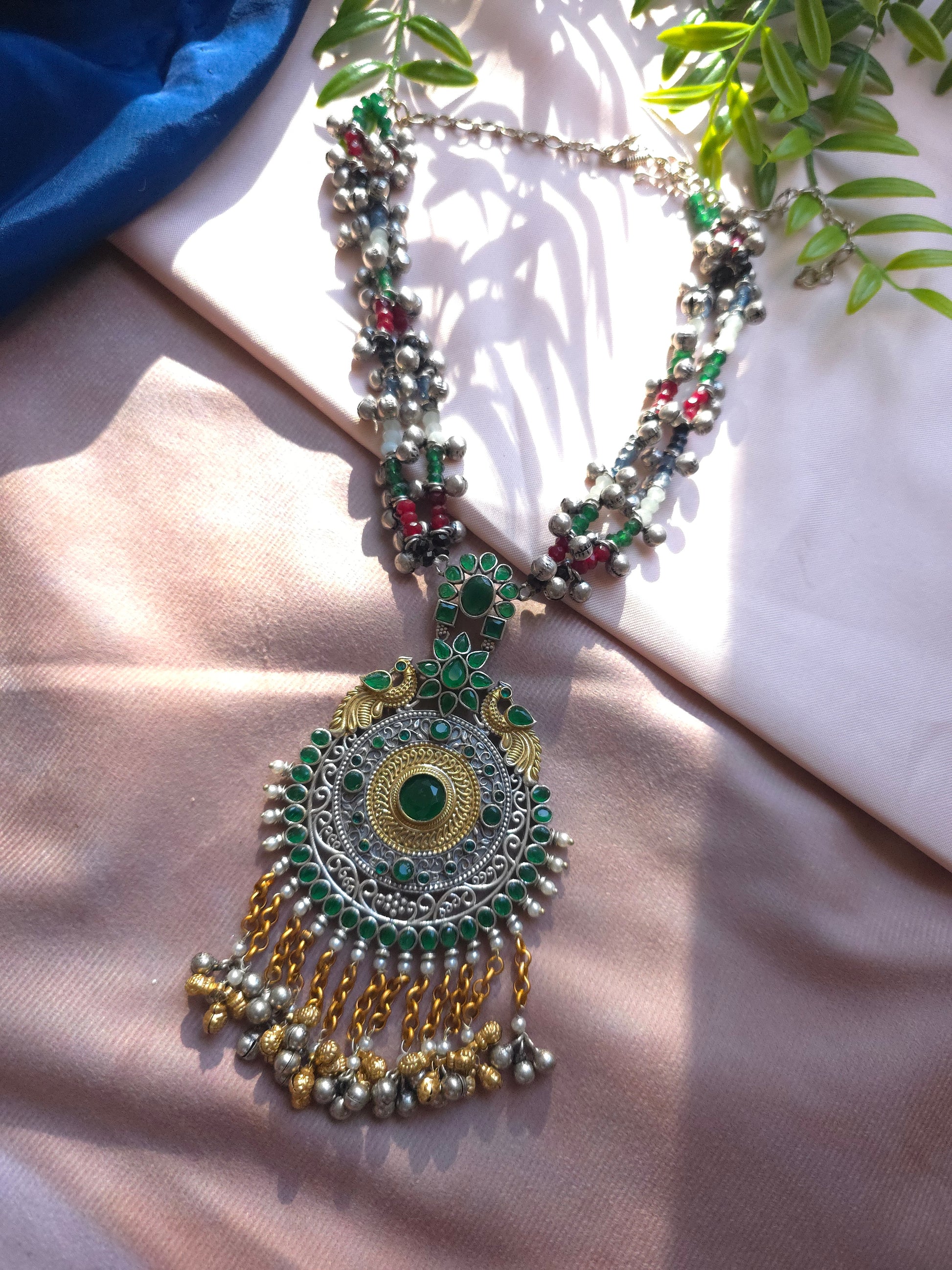 Elevate your accessory game with our exquisite dual-tone choker necklace. Crafted from premium brass, this necklace features intricate detailing that beautifully captures a fusion of traditional and contemporary styles. The silver-like finish adds a touch of elegance, making it a versatile piece perfect for any occasion.