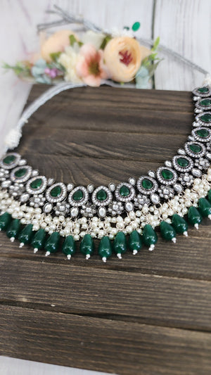 High quality polki set crafted to perfection! A refined jewelry engraved with intricate design! Each piece has an intricate bead work to enrich its elegance.