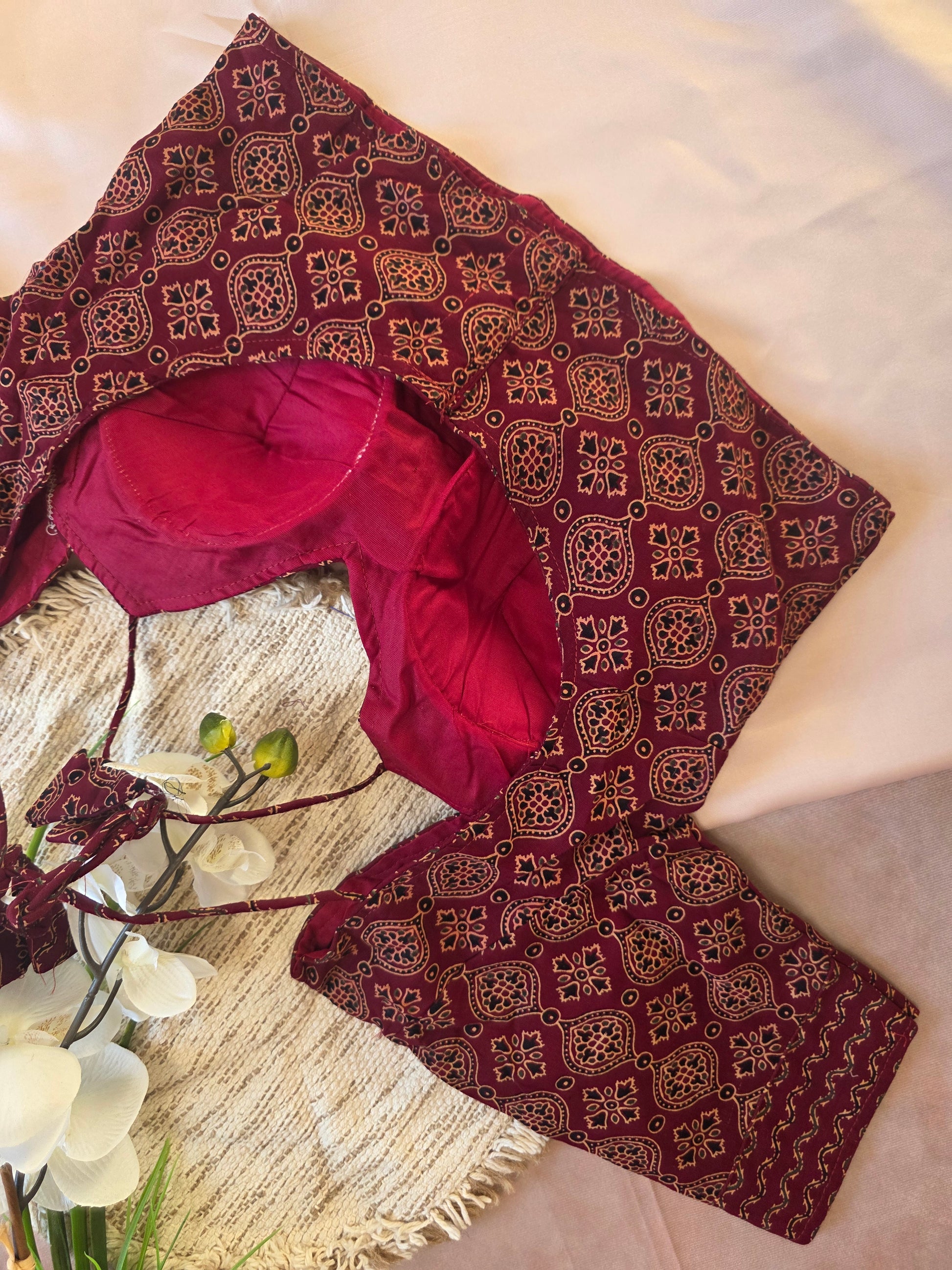 Ajrakh cotton blouse, halter neck blouse, block print blouse, handmade blouse for women, ethnic cotton blouse, designer saree blouse