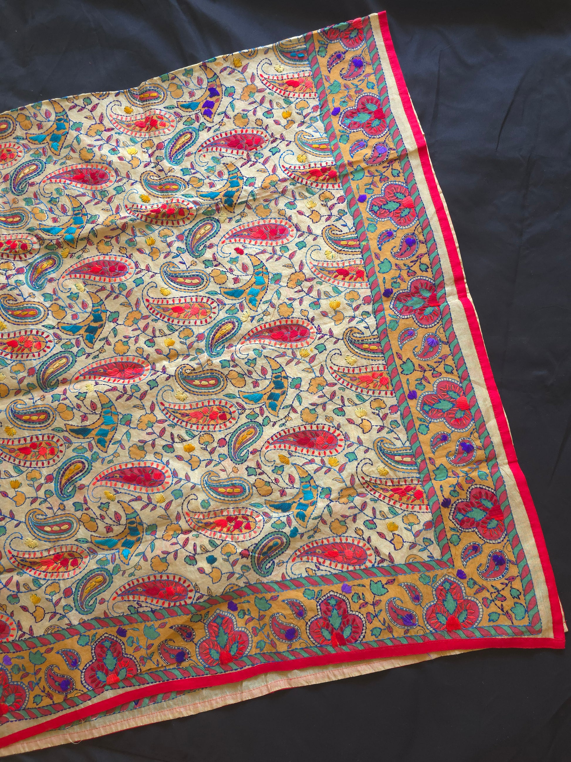 Madhubani dupatta phulkari dupatta hand embroidered dupatta kalamkari gift for her women gifts half white dupatta blue dupatta red dupatta