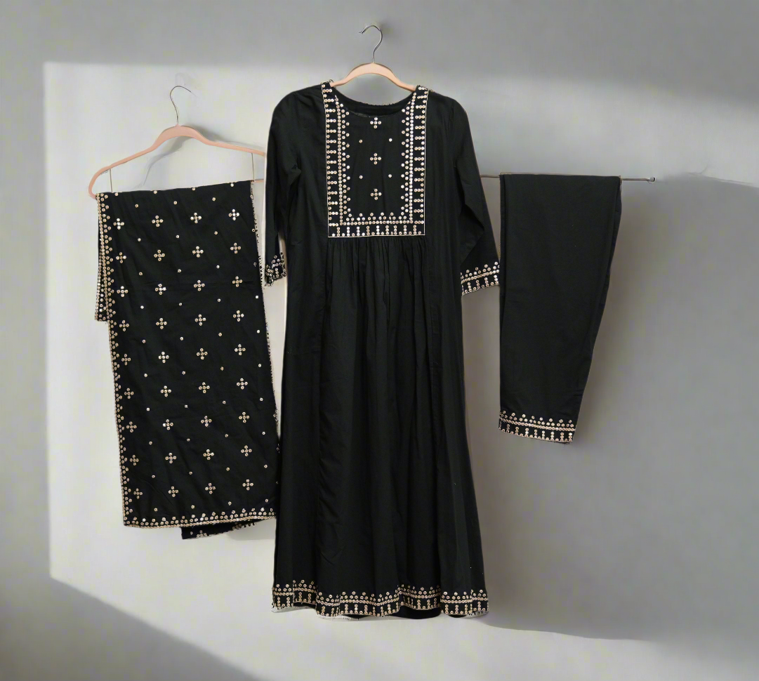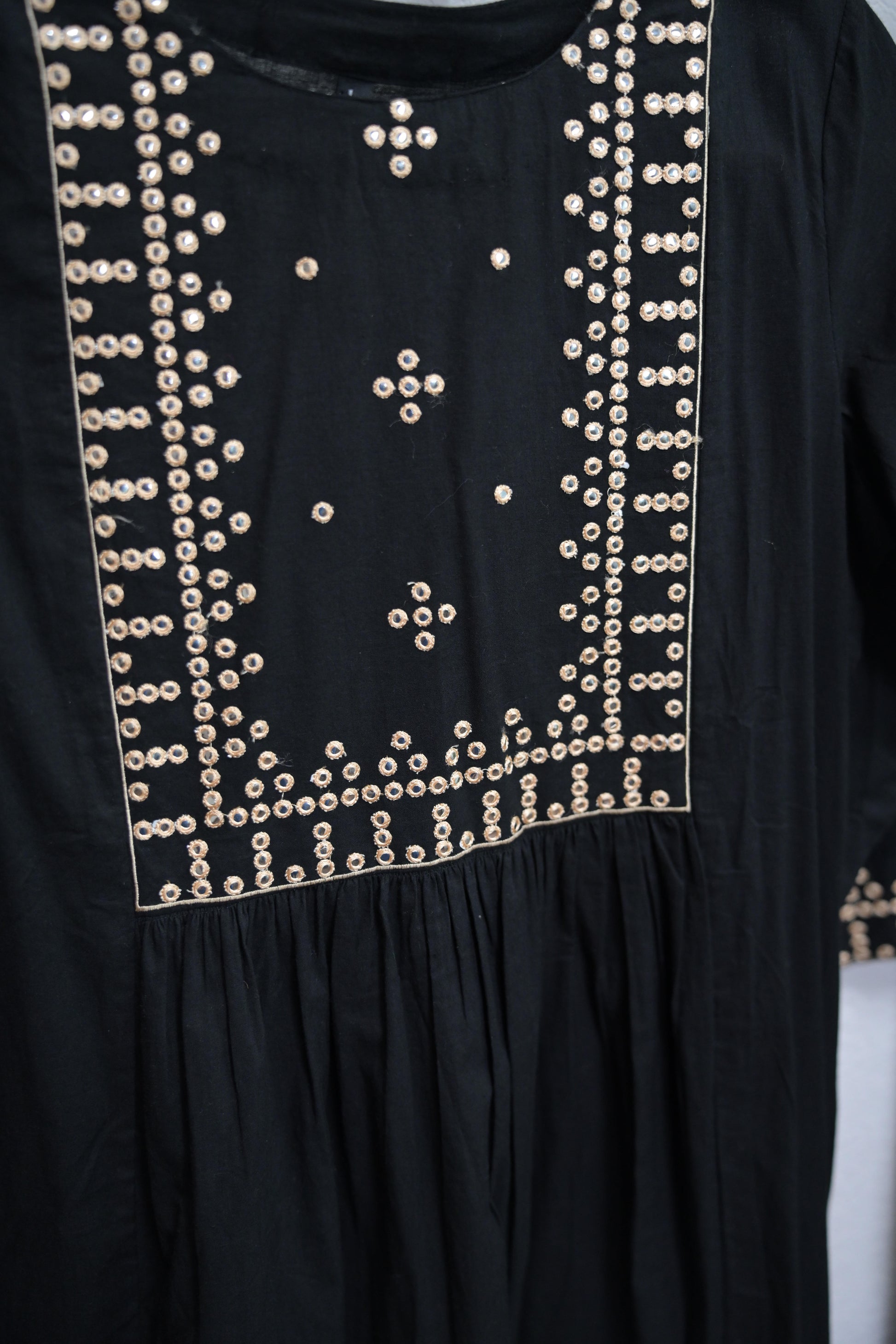 This black embroidery modal cotton kurta and straight set is a comfortable silhouette with soft and skin friendly embroidery. Its perfect for home wear and special occasion. kurta length- 42 Inches ,