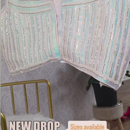 These stunning sequin blouses come in a classic black-and-white combination, designed with a chic front cut that adds the perfect touch of elegance and flair. Whether you're styling them with a lehenga, sari, or even mixing them into a fusion outfit, the possibilities are endless—I can think of a million ways to wear these!